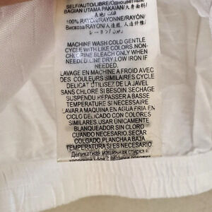 This is a BCBGeneration White Collared V-Neck Braided Crop Top in size small. It is made of lightweight rayon material with a solid pattern and short casual sleeves. The top features a cropped style and a V-neckline, suitable for a beach, bohemian, or city-inspired look.