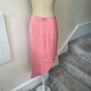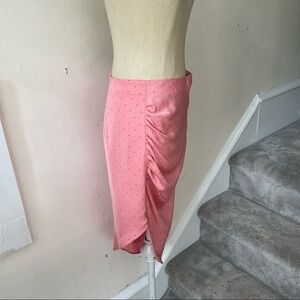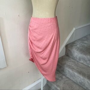 Lovely asymmetric hem side ruched slip skirt from BCBGENERATION. Color is watermelon pick with black polka dots. Side zip. Lined. New with tags. Inventory: a52j*mteb