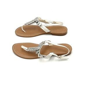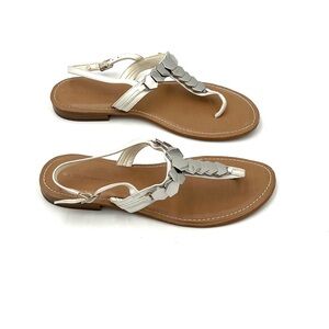 BCBGeneration White Blayre Flat Sandals Thongs Silver Accents Casual Sexy Size 7