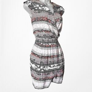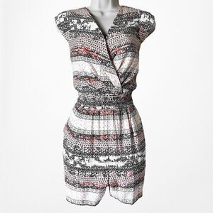 BCBGeneration White Gray Casual V-Neck Printed Striped Romper Dress Size S/M