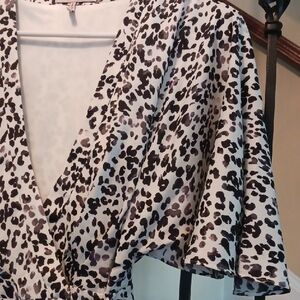 Chic mini dress with a stylish pattern. Features a flattering wrap design. Ideal for versatile wear.