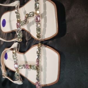BCBGeneration White with Jewel Embellishment Strap Sandals