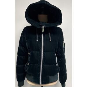 BCBGeneration Women Winter Down Velvet Puffer Coat Outerwear Emerald Green Small