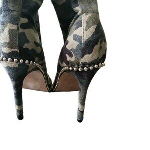 BCBGeneration Womens 9.5 Studded Camo Ankle Boots Pointed Toe Stiletto Heels