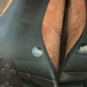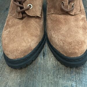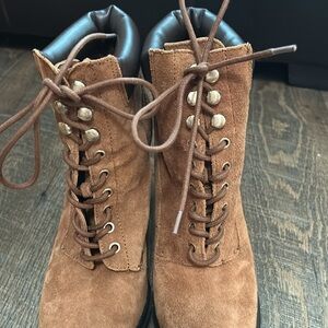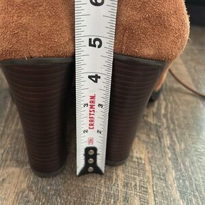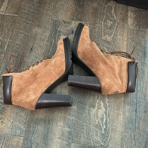 These ankle boots feature a platform heel style with a suede upper material and leather lining and insole.
