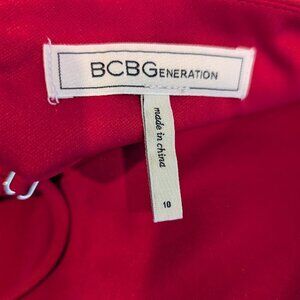 Add a pop of bold elegance to your wardrobe with this vibrant red mini dress from BCBGeneration. Featuring adjustable spaghetti straps, a flattering deep V-neckline, and a Faux-Wrap-style front with a side tie, this dress is designed to turn heads. The asymmetrical hem adds a modern touch, while the back zip closure ensures a sleek fit.