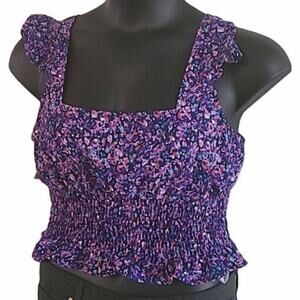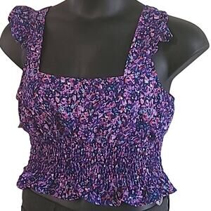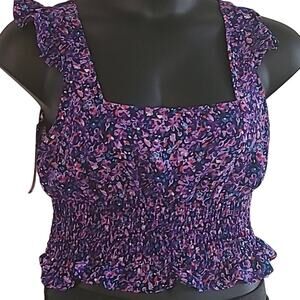 BCBGeneration Women's Floral Smocked Sleeveless Blouse - Size Large