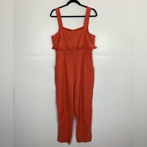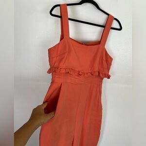 BCBGeneration Women’s Jumpsuit Size 10 Ruffle Pockets Color Orange Sleeveless