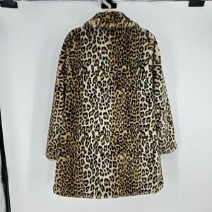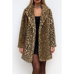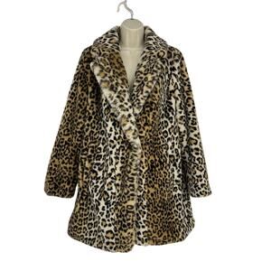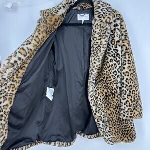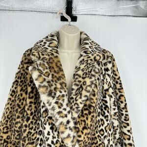 BCBGeneration Womens M Faux Fur Coat Mid Length Leopard Y2K 90s Glam Mobwife