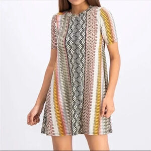 BCBGeneration Women's Medium Geometric Optic Print Stretch Mini Swing Dress