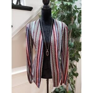 BCBGeneration Women's Multi Lined Striped Long Sleeve Open Front Blazer Size L.