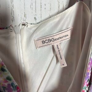BCBGeneration Women's Ruched Floral Print Pink Purple Sleeveless Mini Dress 14