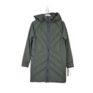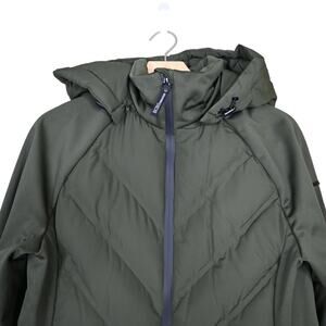 BCBGeneration Womens S Mixed Media Hooded Quilted Jacket in Loden NEW
