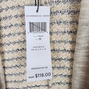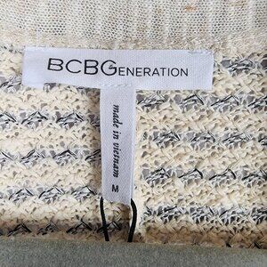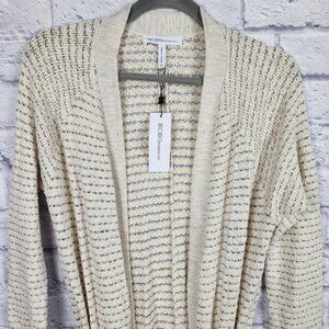 BCBGeneration Women's Size Medium Beige Striped Long Open Front Cardigan Sweater