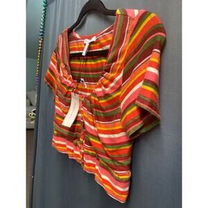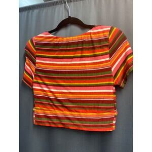 BCBGeneration Womens Size Medium Variegated Stripe Button Crop Top Shirt (b29.1)