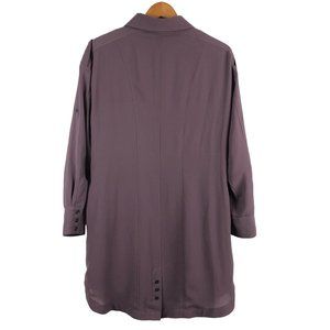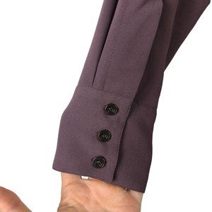 Women's dusty purple lavender shadow collared roll tab long sleeve shirt dress. Button placket, roll tab sleeves, collard neckline. Chest pockets, lined.