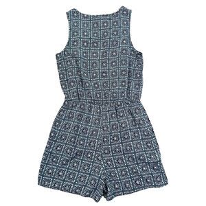 This stylish BCBGeneration women's romper is perfect for any casual or travel occasion. Llightweight, breathable, and comfortable rayon fabric ensures all-day wearability. Has pockets for convenience. The sleeveless design and 2.5-inch inseam make it ideal for summer, fall, and spring seasons, and the geometric pattern accents add a touch of preppy style. The romper comes in size S.