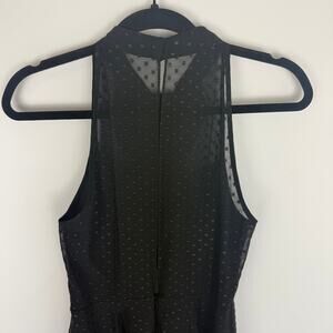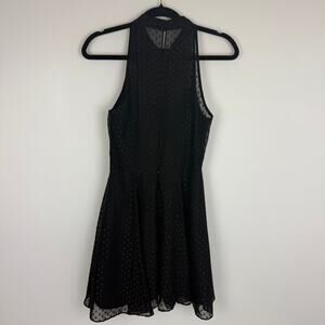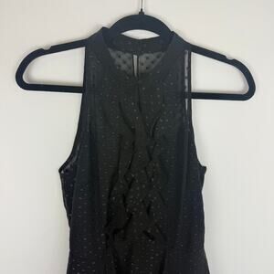 BCBGeneration Womens Sleeveless Halter High Neck Ruffle Dot Print Black Dress 6