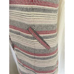 Color: Cream with black and red horizontal woven stripe pattern
