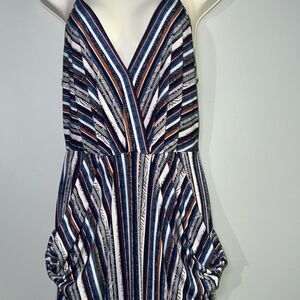 BCBGeneration Womens Striped Midi Dress Halter Slit Blue Stripe size Small