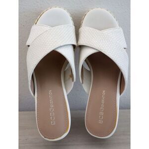 BCBGeneration Women's Sz 7M White Habiana Snake-Embossed Wedge Sandals