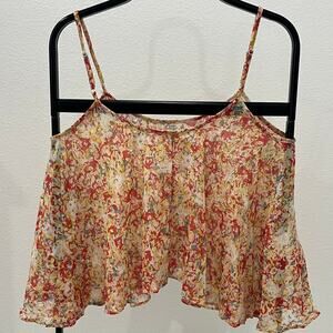 BCBGeneration Women's XXS Red Yellow Blue Floral Flowy Tank Blouse