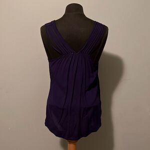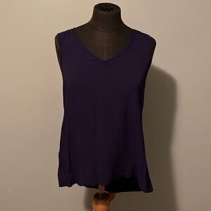 Crafted from 100% rayon, this tank top offers a luxurious, lightweight feel that drapes beautifully on the body. The vibrant jewel tone adds a pop of color, perfect for any season. The sleeveless design and V-neckline create a flattering silhouette, while the strappy back detail adds a touch of intrigue and sophistication. The high-low hem provides a modern twist, making this pullover tank top a versatile piece that can be effortlessly styled for both day and night.