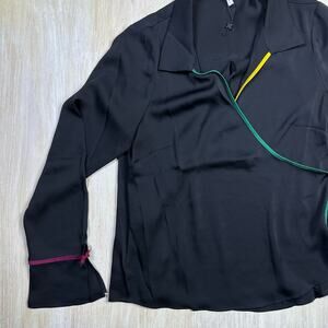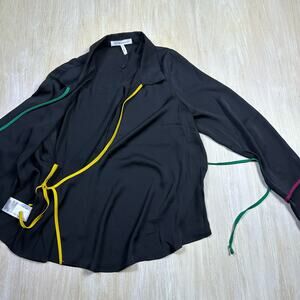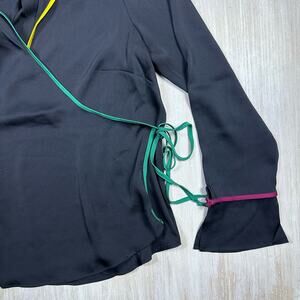 BCBGeneration Wrap Long Sleeve Femme Coquette Color Accent Tie Blouse Large