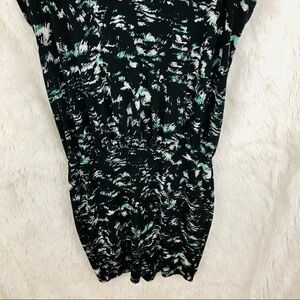 BCBGeneration black with teal and white pattern multicolor keyhole v neck midi