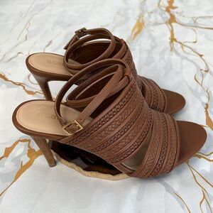BCBGeneration brown, weave ankle strap up heels