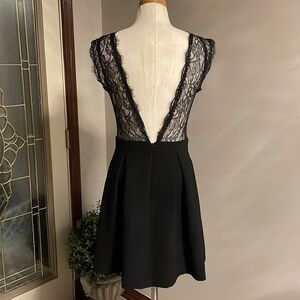 BCBGeneration cocktail V lace insert flare mini dress black deep V back size 6