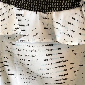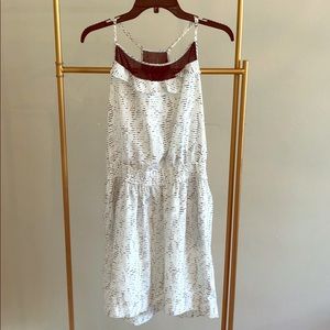 BCBGeneration white dress has a cinched elastic waist band, side pockets, adjustable straps and black mesh detailing. Attached sewn in slip inside for see-through protection. Length is approx 34” Only worn once!
