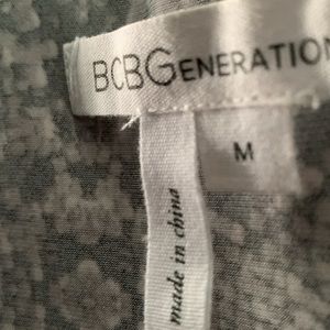 Very cute layered BCBGeneration sleeveless top/minidress. Measures 34” in length from shoulder to bottom of top/minidress. Small piece of faux leather at top. Cute design with black, white and beige coloring. Very cute!!