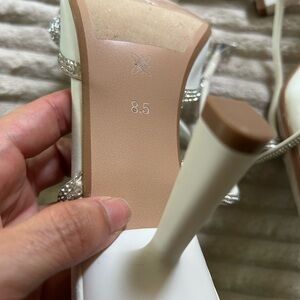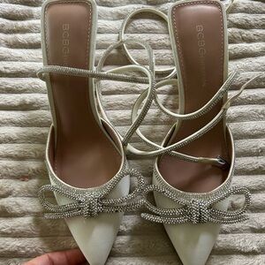 BCBGeneration heels white rhinestone wrap around sz 8.5