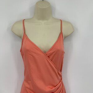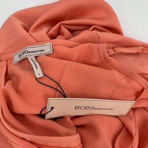 BCBGeneration midi slip dress deep peach orange faux wrap surplice new Small