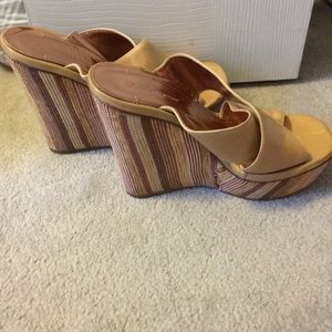 Uses BCBGeneration orange and tan wedges. In used but good condition. They have a platform and are very comfortable. Great for vacation and warmer weather 🌴☀️