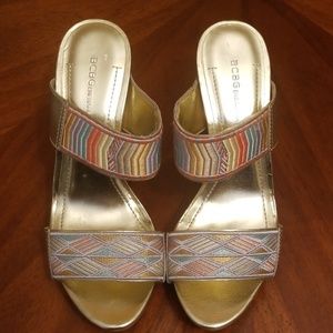 BCBGeneration pastel wooden wedges open toe sandal. Size 7.5