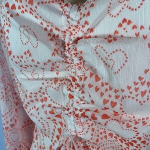 BCBGeneration peplum bell long sleeve sweetheart sheer white red valentines top