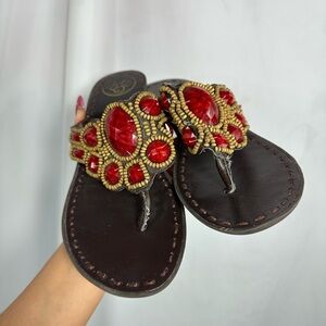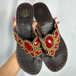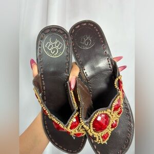 BCBGeneration red stoned thong wedge sandals size 8