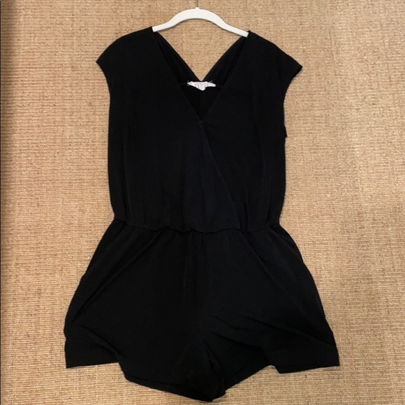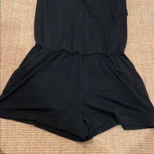 adorable romper from BCBGeneration. Absolutely love this *wrinkle free* fabric! Has pockets! Snap front closure. Cinched waist. V-neck. Like new!!