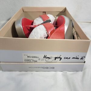 BCBGeneration size 7 Coral Pink Luster Snake wedge sandals New In Box