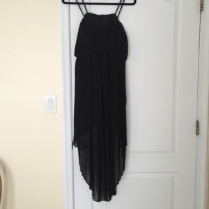 High-low style dress in sheer chiffon. Lined halfway (lining is the same length as the front of the dress). Great casual summer dress. I've worn this with flat sandals for day and wedges/heels for night. Runs slightly big, fits a size 4-6.