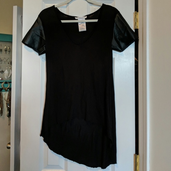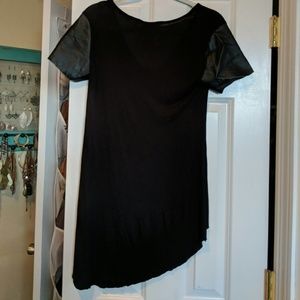 High low BCBGen tshirt with faux leather sleeves