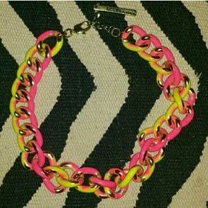 Funky thick chain necklace that varies between pink, yellow, and gold. Wear it with an all black outfit for a pop of color and cool! Worn once.