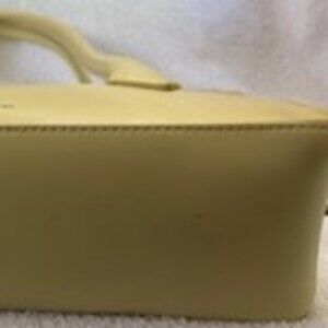 BCBGeneration "Lemon Custard" dual zipper pull shoulder bag with extra long straps. This vegan leather unique handbag has a silver zipper with dual direction zipper pulls in highly polished logo silver tone metal. The bag measures 12-3/4" across and 4-1/2" high and is 4" deep. The zipper measures appx 15-1/2" in length overall and the long handles have an appx 10-1/2" drop. Features a 3/4" wide matching handle strap with a silver tone snap that secures the two handles at the top (or mostly anywhere along the length of the handles and/or can be used to attach a bag charm or even snap your car keys to the outside. Interioe is a black logo polyester lining with the Lemon Custard 3-card holder slots on one side and a zip closure pouch on the other side that is nearly the width of the handbag. Love, love, love this handbag and how securely it can be carried under the arm and is so stinkin' cute! NWT