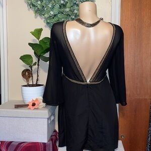 BCBGeneration womens dress 6 small mini black V back sheer sleeve party BCBG NYE