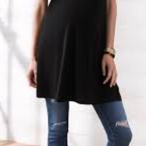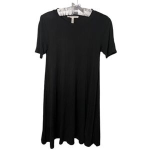Super soft black T-shirt dress. Wear a a dress or a a tunic. Want a trendy look? Add a Jean jacket! High neckline. Short sleeves.