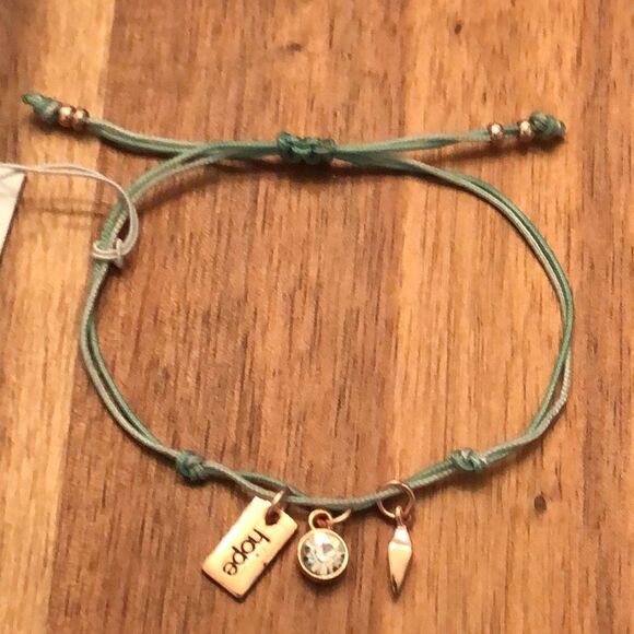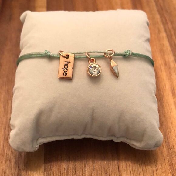 1 Sliding Knot Adjustable Charm Bracelet - Green and Rose Gold Tone