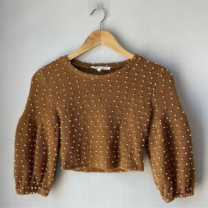 This BCBGeneration Cropped Sweater Brown White Puffs is adorable and in Gently Pre Loved Condition.