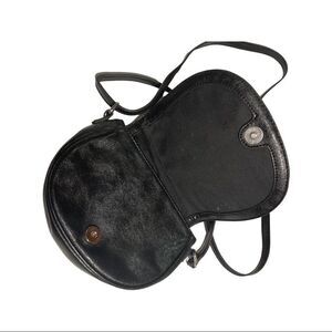 Leather BCBG crossbody, adjustable strap, front signature plaque, saddle style